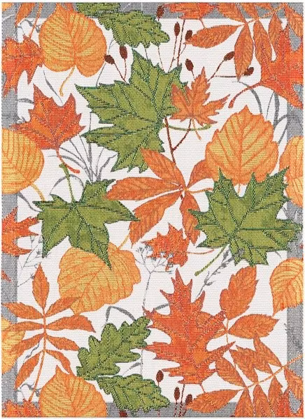 Tablett/liten duk från Ekelunds Linneväveri med löv i höstens färger.Storlek 35x 48 cm.100% Ekologisk bomull.Tvättråd: 60 grader. Ska ej torktumlas. Tål strykni