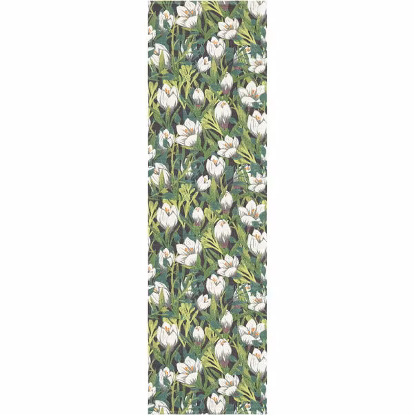 Fin bordslöpare med med vackert motiv av blomstrande krokus på blå botten från Ekelunds Linneväveri.Storlek 35x120 cm.100% Ekologisk bomull.Tvättråd: 60 grader.