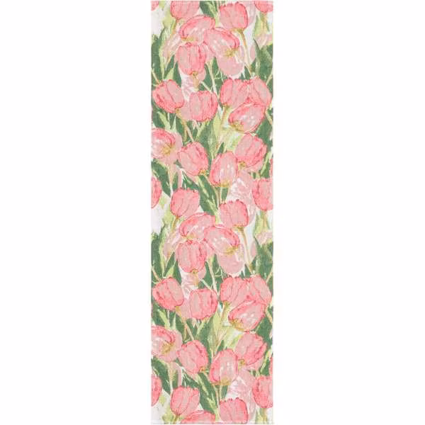 Bordslöpare med vackra tulpaner i olika rosa toner från Ekelunds Linneväveri.Storlek 35x120 cm.100% Ekologisk bomull.Tvättråd: 60 grader. Ska ej torktumlas. Tål