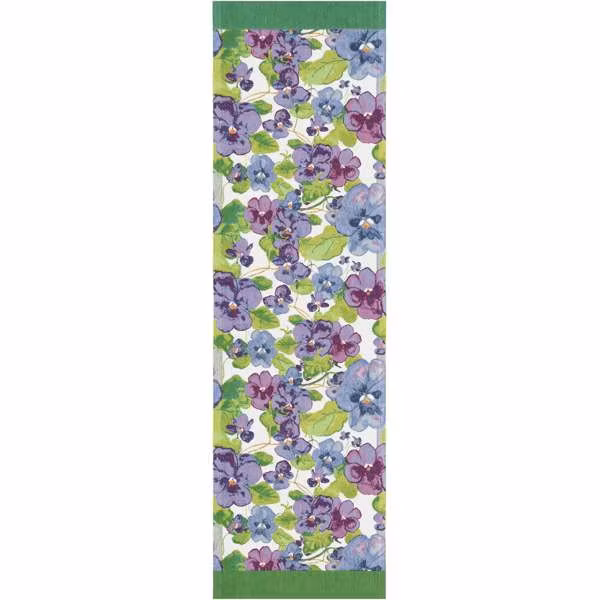 Bordslöpare med motiv av härliga violer i vackra färger från Ekelunds Linneväveri.