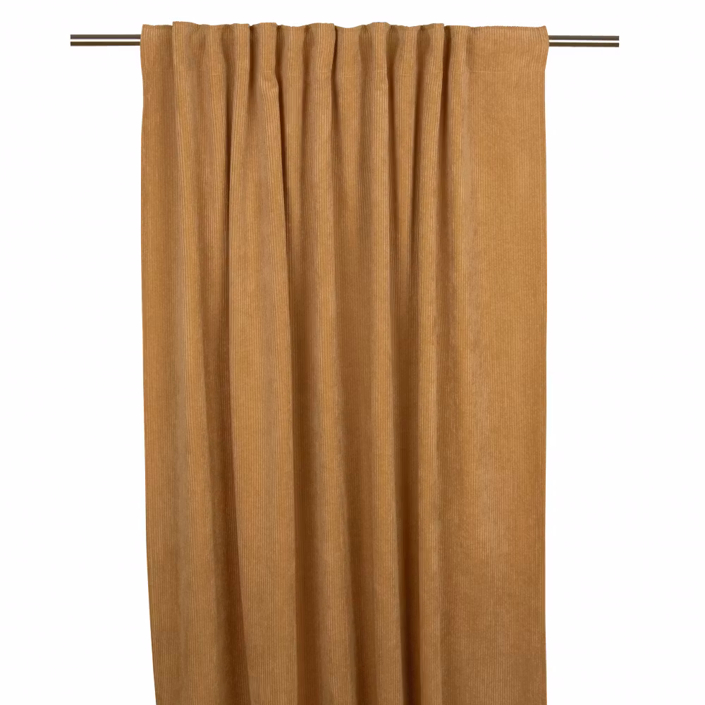 Gardinen har multiband i ovankant, fållade långsidor och overlocksöm i nerderkant. Multibandet är en flexibel lösning som gör att gardinen kan hängas upp med fingerkrok, rynkbandskrok eller träs direkt på en stång. Använd snabbfållningsband för att få önskad längd på gardinen.