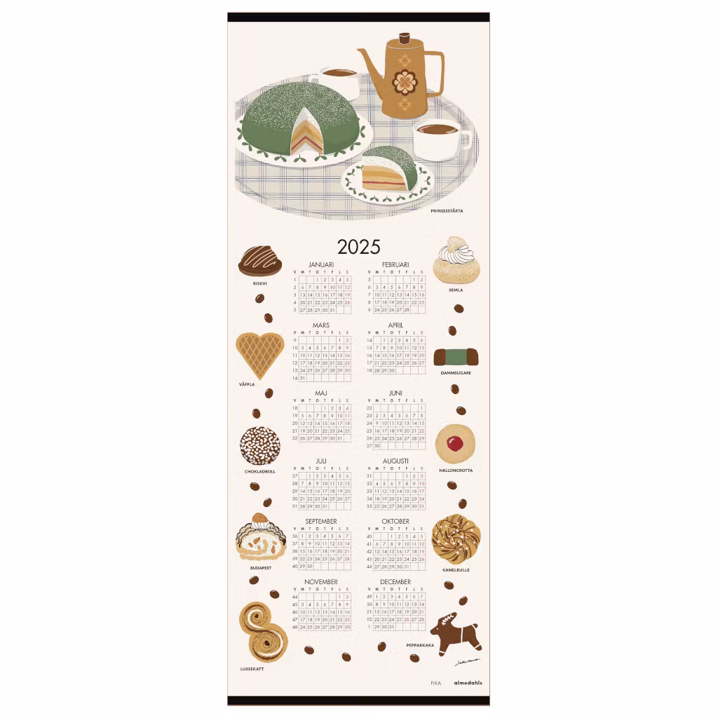 Almedahls klassiska tygkalender uppskattas av många. Kalendern är avsedd för upphängning på vägg. Det printade tyget är monterat på målade träl