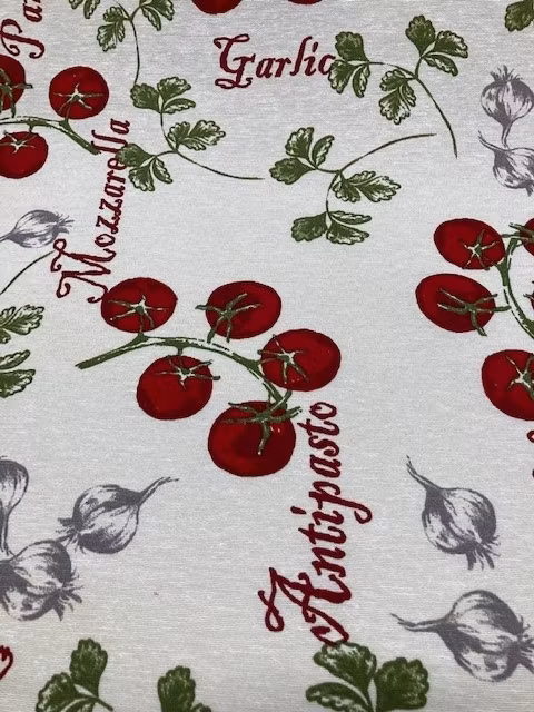 Pecorino 169 kr Metervara med härligt mönster av solmogna, röda tomater. Produkten är tyvärr slut i lager. :( Produktinformation Metervara med härligt mönster av solmogna, röda tomater.Bredd 140 cmRapportMaterial: 70% bomull, 30% polyester