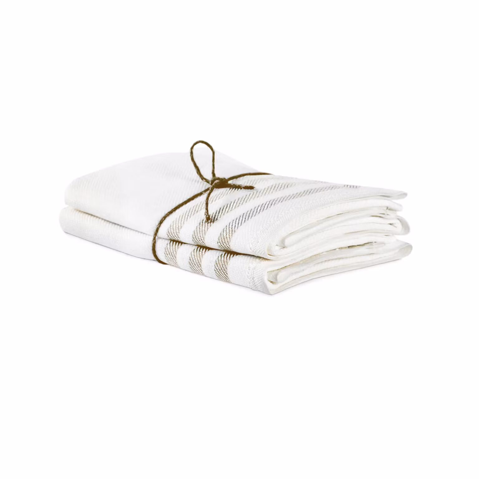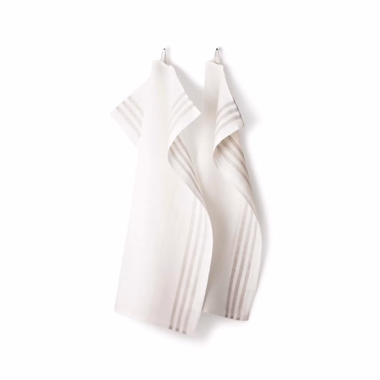 Kypertvävd handduk med klassiska ränder i natur. Tekniken gör handduken lite mer formbar och rörlig.100% lin50x70 cm2-pack