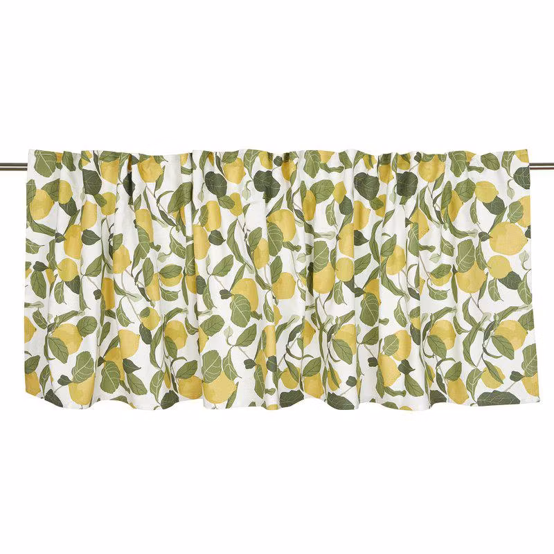 En gardinkappa med tryckt citronmönster som ger en livfull sommarkänsla i ditt hem.