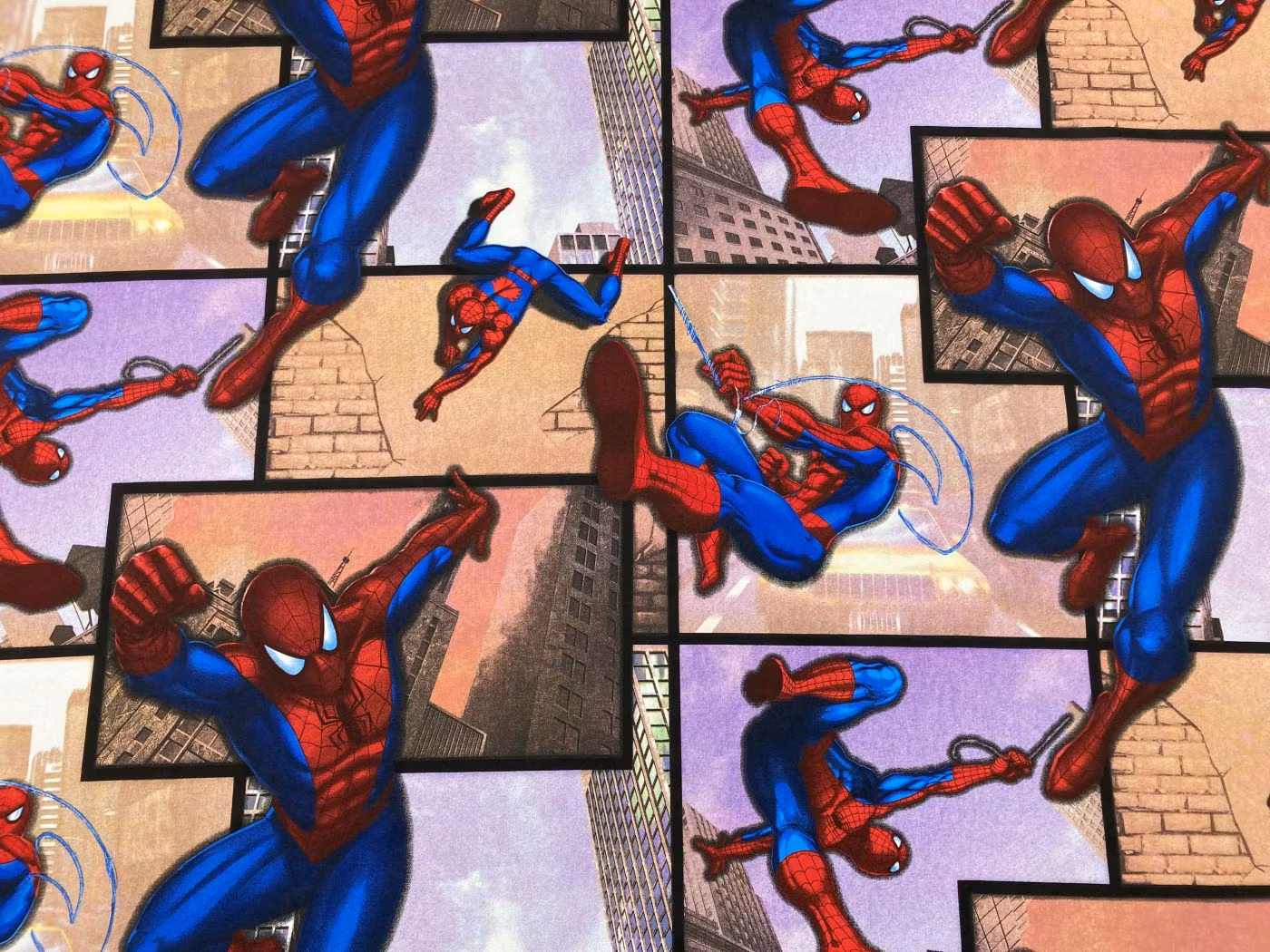 Spiderman i farten tryckt på bomull. Stuvbit på 2,4 meter.