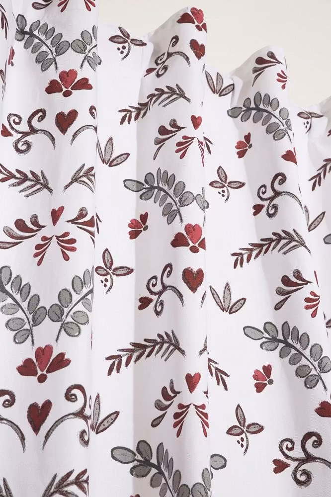 Multibandslängder med tryckt mönster av hjärtan och kvistar.