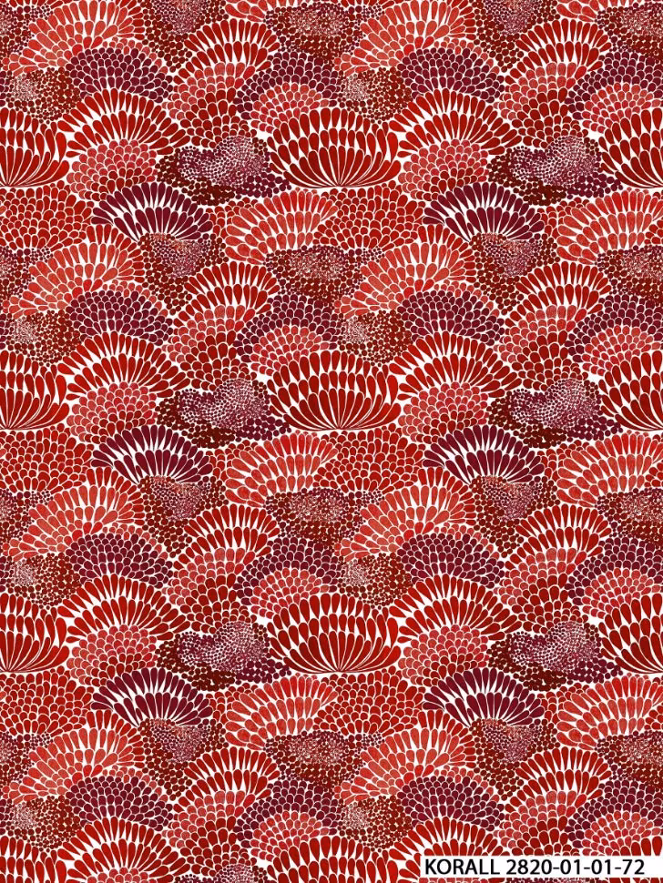 Korall, en blomstrande design i många röda nyanser som skapar effekt och liv.