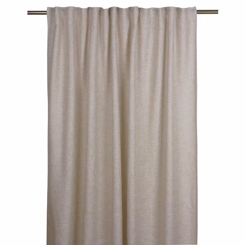 Extra bred gardinlängd i linnelook. Tyget släpper igenom ljuset på ett mjukt och behagligt sätt och har ett vackert fall med lagom tyngd.Gardinen har mult