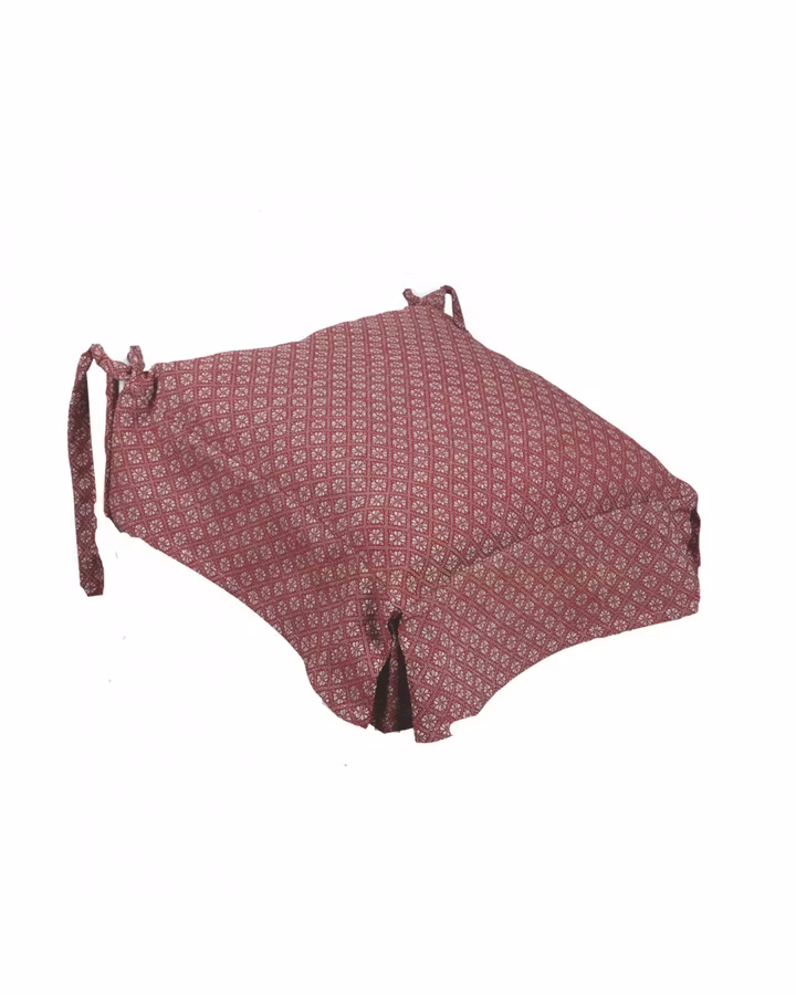 Vackert rött fodral för stolsdyna med linnefärgat mönster i jacquardvävd bomull.Fodralet har dragkedja isydd på baksidan och matchande knytband.42x42 cm100% bom