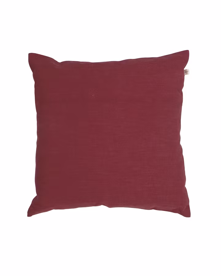 Lättplacerat, mjukt kuddfodral i en härligt mörkröd färg.Fodralet har en dragkedja isydd på baksidan.Använd gärna en innerkudde som är något större än kuddfodra