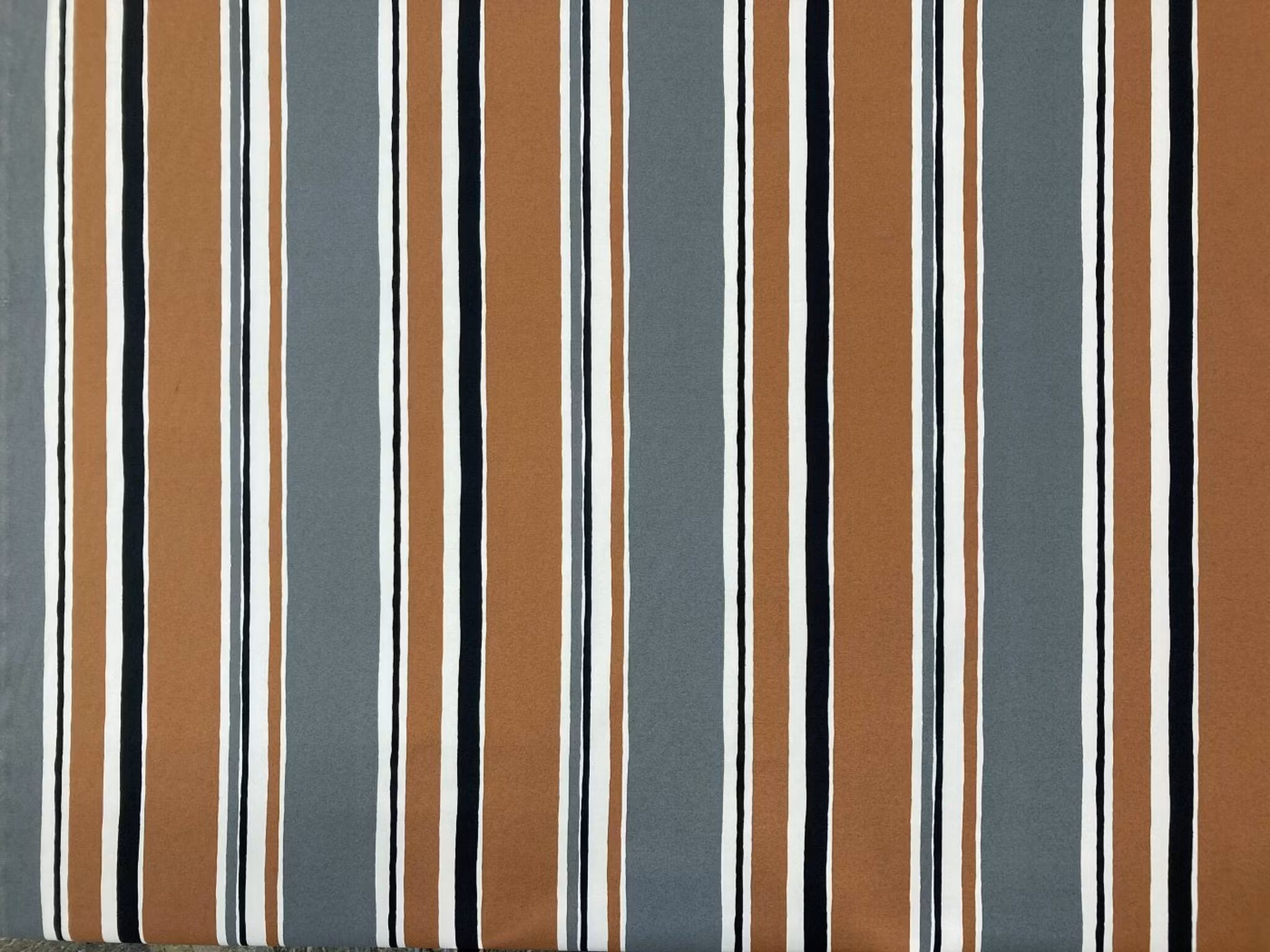 Metervara med tryckta ränder i grått, svart,brunt och offwhite.