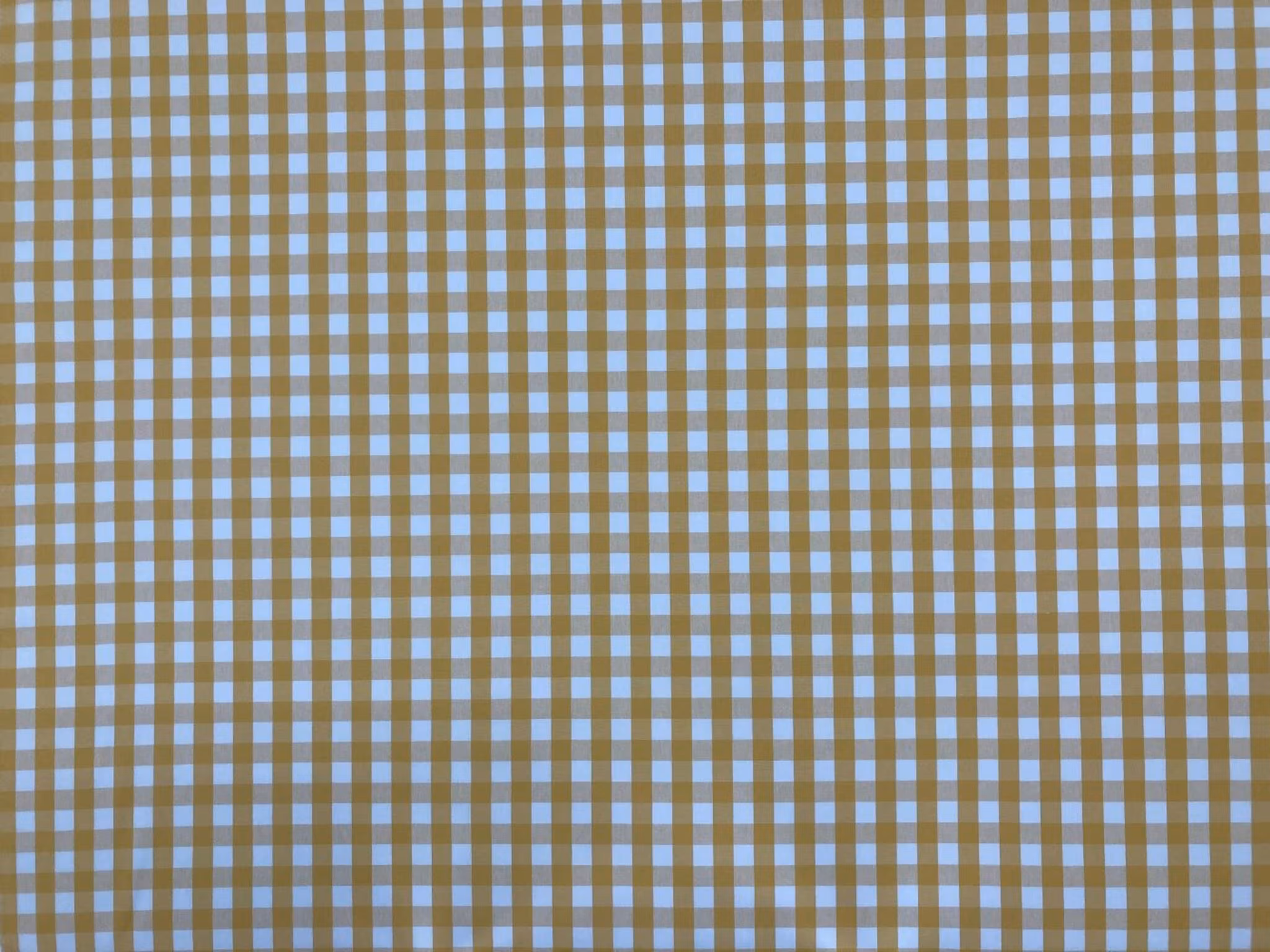 Vävd, rutig metervara i gult. Rutorna är 2x2 cm.Passar fint till gardiner, kuddfodral, stolsdyna, dukar, förkläden etc.Bredd 150 cmMaterial: 100% bomullI lager: